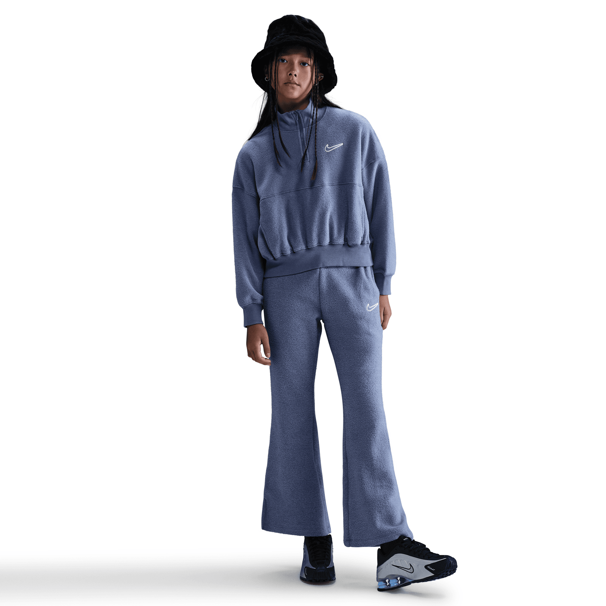 This roomy quarter-zip top has all the space and coziness you need in the cold. Its fleece is smooth on the outside and fuzzy on the inside for a fell that's as warm as it looks.