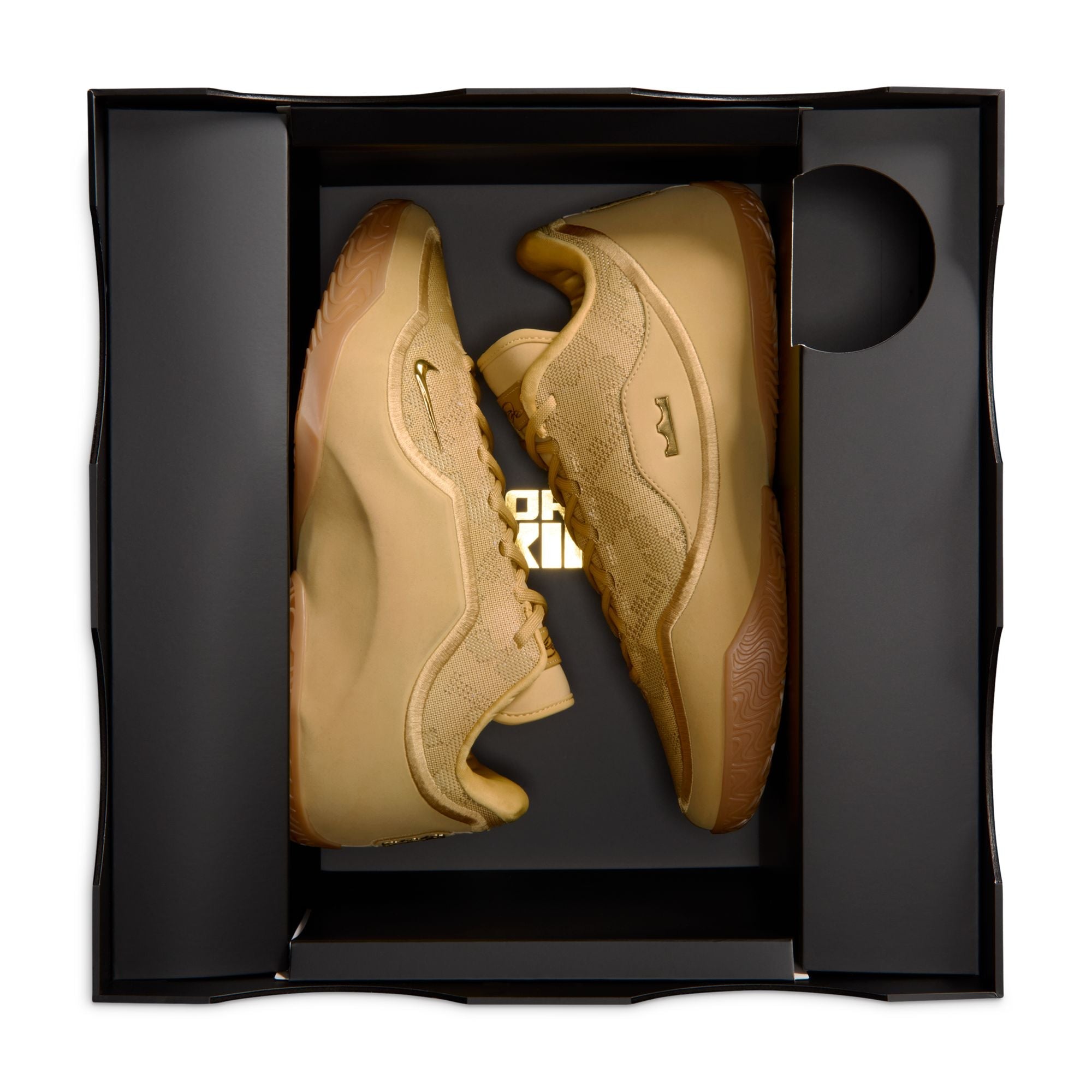 Early in his rookie season, LeBron famously told Nike that he could hoop in anything, even work boots. This confidence led to the legendary boot-inspired colorway of the Air Zoom Generation, the King’s first signature shoe, and ultimately Bron’s first MVP in 2009. This LeBron XXIII carries on that excellence with Nubuck leather around the crown containment system and a gum outsole. “LJ” crowns around the upper complement a reflective, iridescent image of Bron holding up the MVP trophy, the first of four for the King.