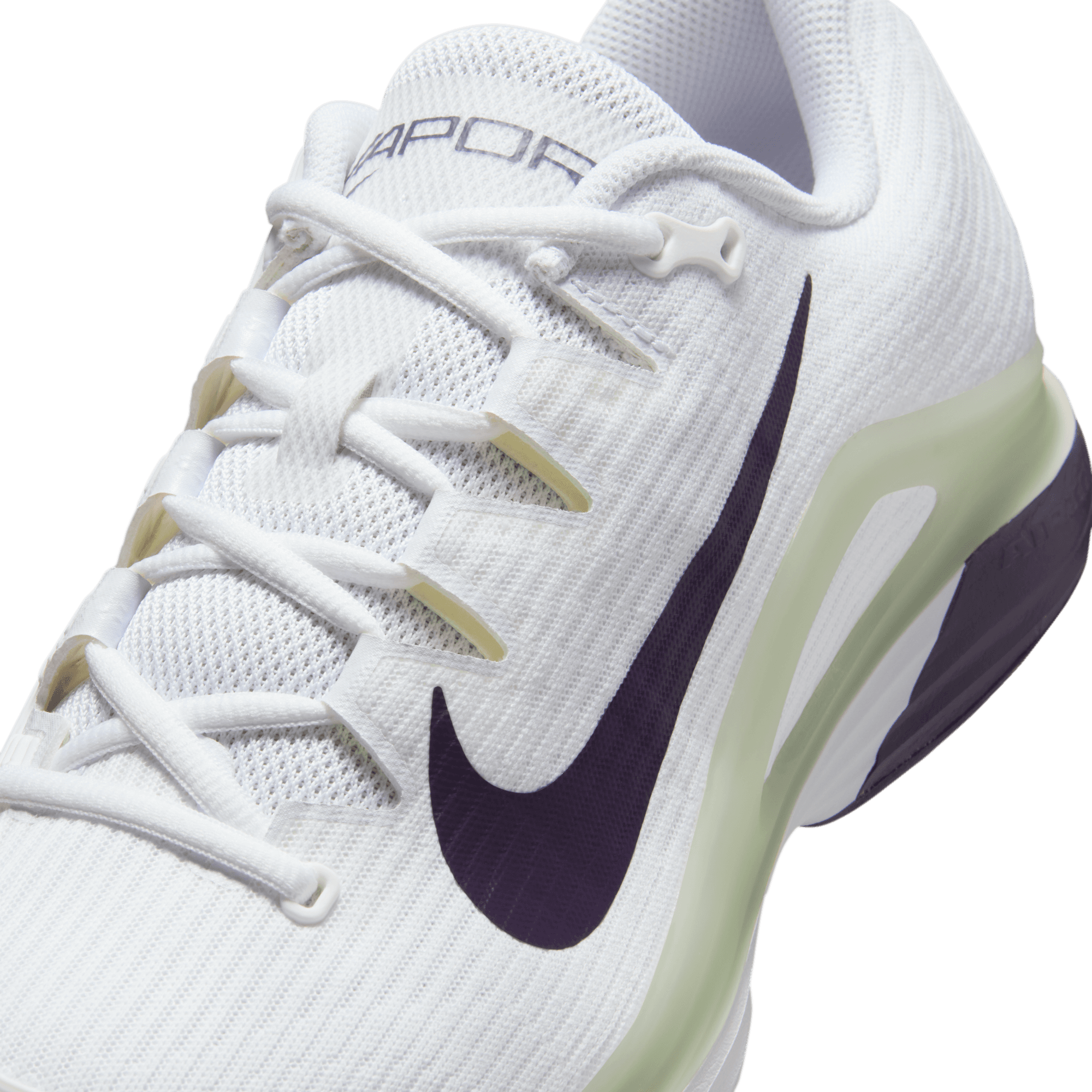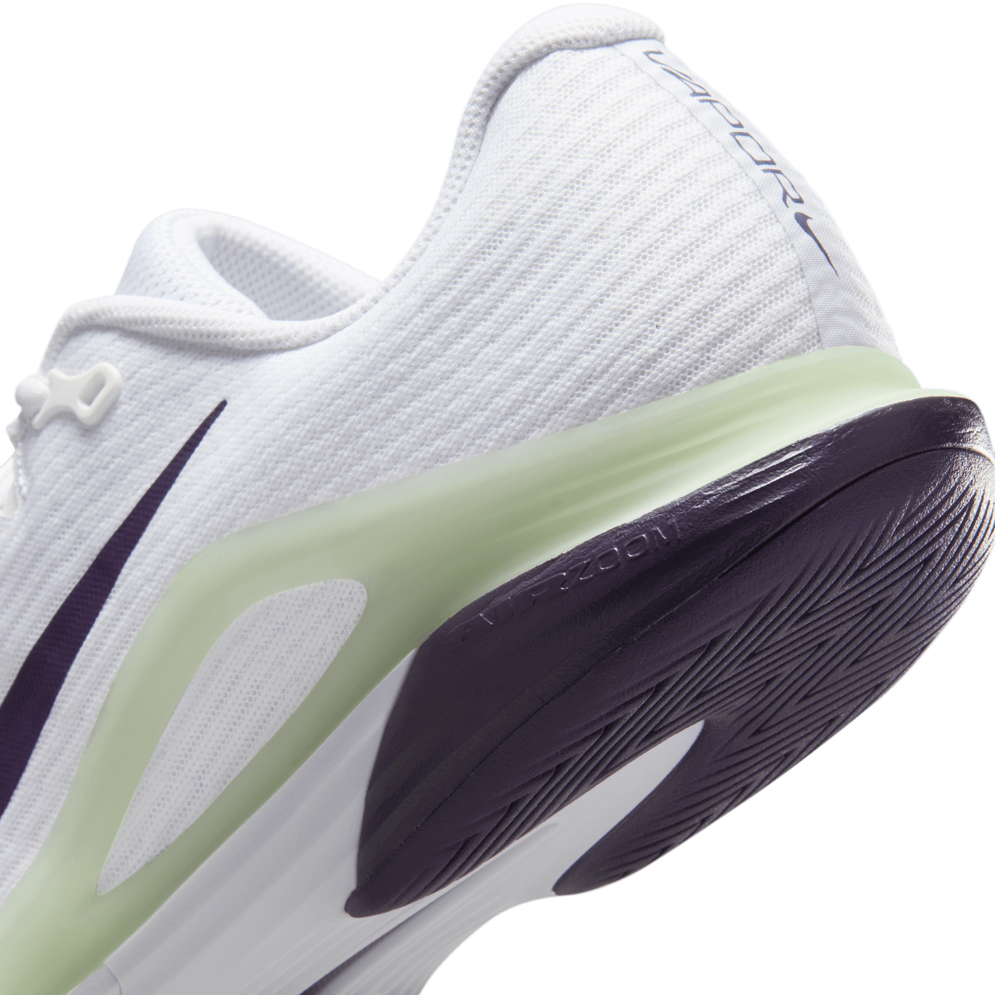We brought back the firm midfoot plastic piece seen on past Vapors to provide optimal stability and transitions when cutting from side to side. The supportive piece also allowed us to remove the rubber in the midfoot, which helps reduce the overall weight of the shoe.
