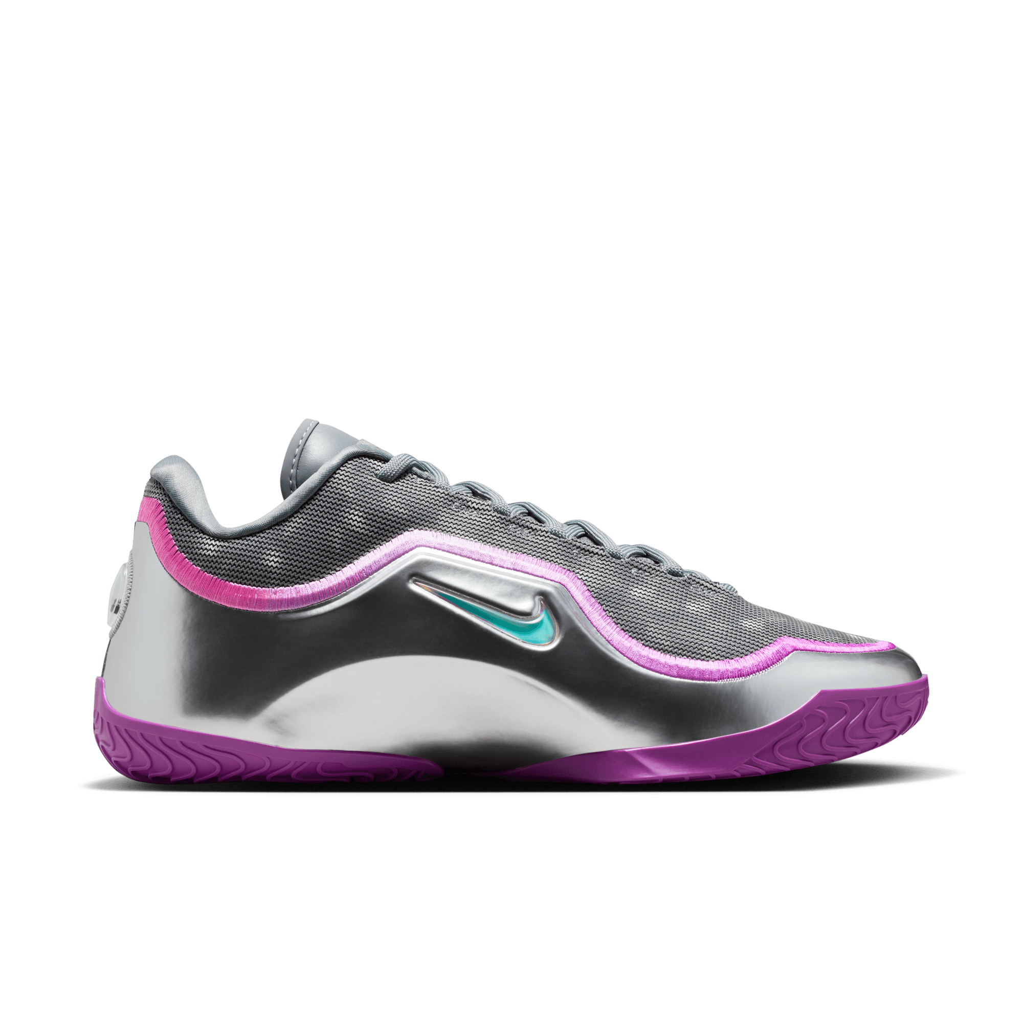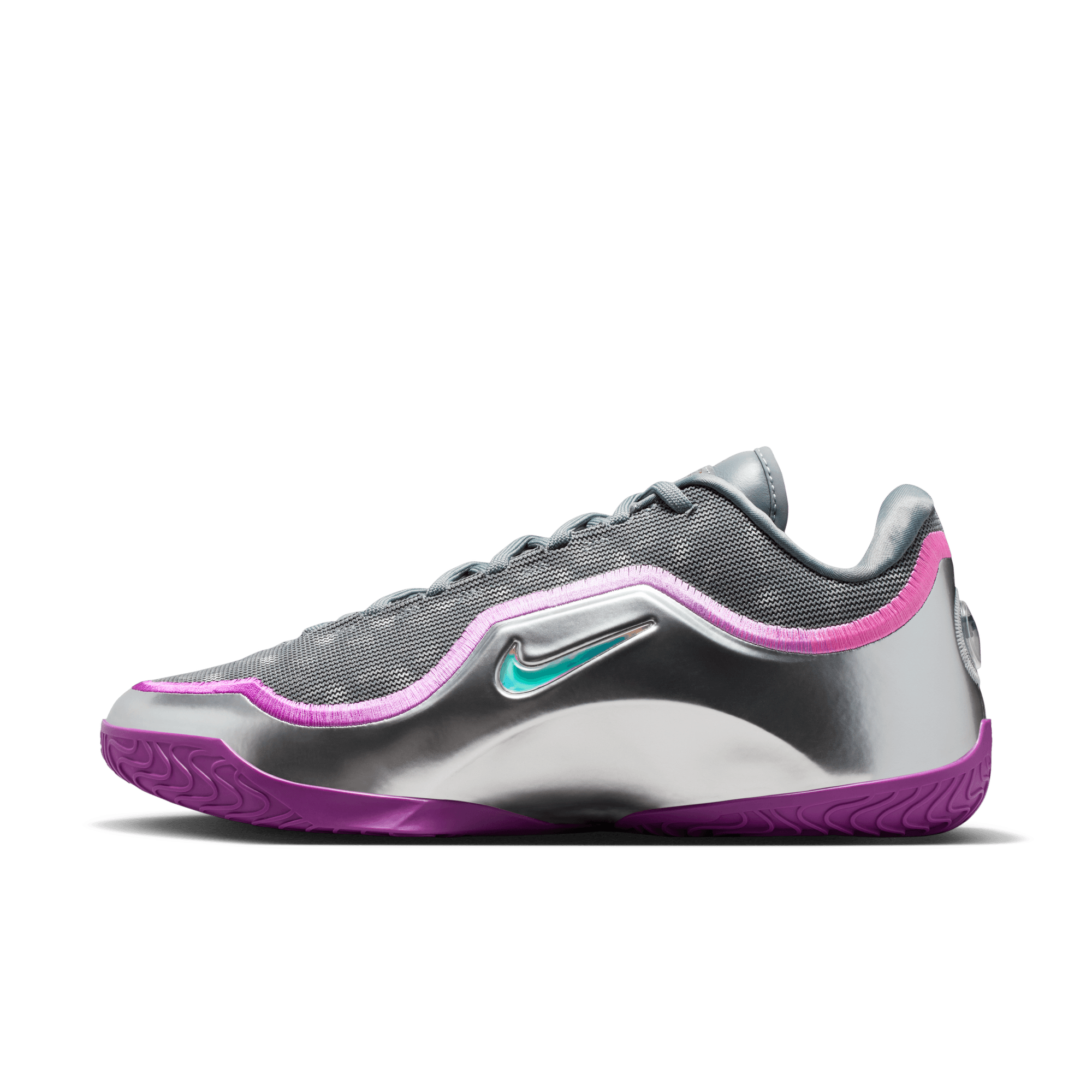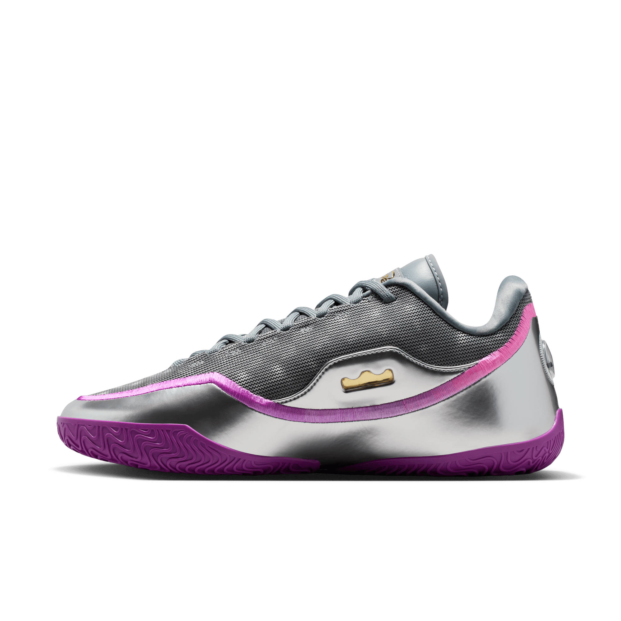 Bron’s 2020 title in The Bubble might have been the toughest of the four, considering the circumstances. But LeBron led as only he could and came out with another crown. The silver iridescent upper is reminiscent of an actual spherical bubble’s exterior. Both Swoosh logos are jeweled—salutes to the hard-earned 4th ring. And purple hits pay homage to the franchise Bron helped carry to a 17th championship.