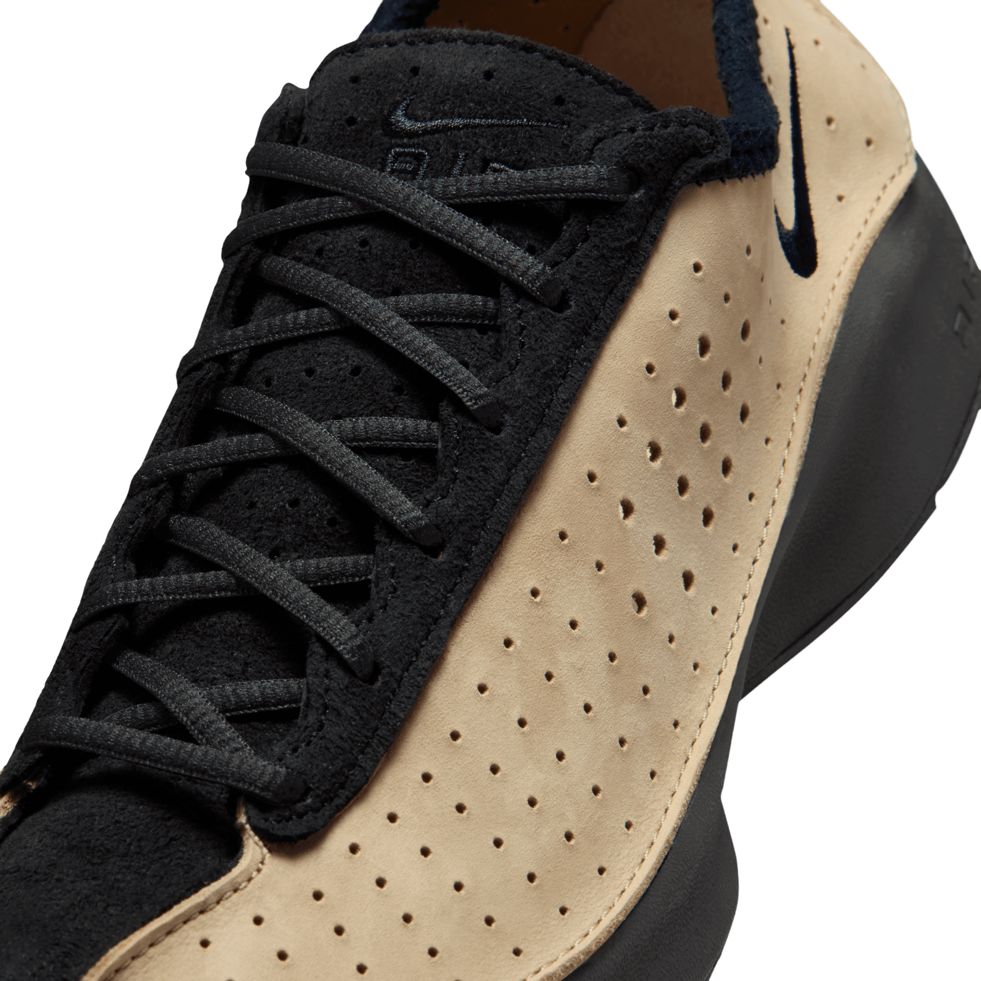 Perforated real and synthetic leather upper with suede accents is breathable and durable.