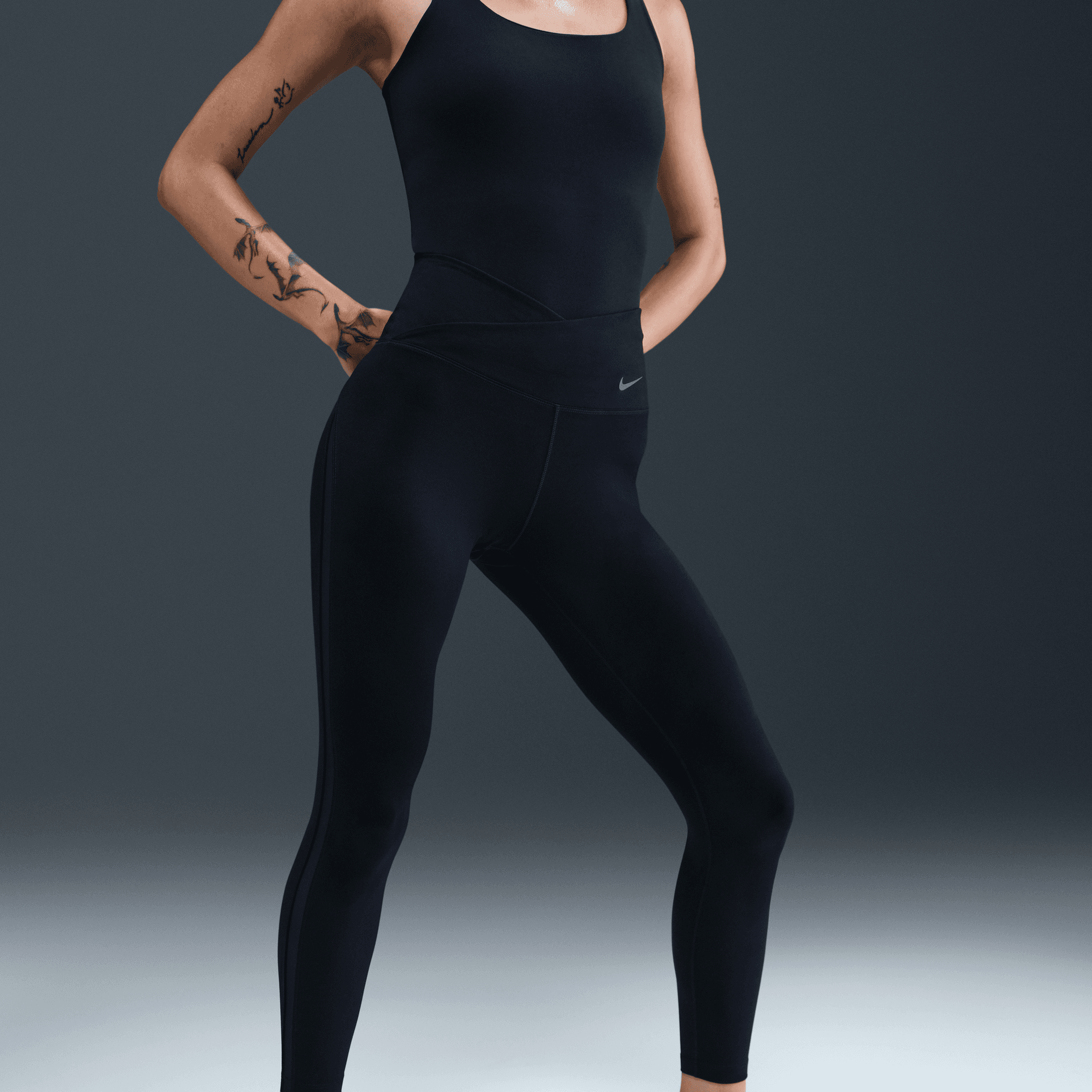 Nike One works for it all. Elevated with sheer panels down the legs and a crossover waistband, these midweight, peachy-soft leggings stretch with your every move and dry quickly.