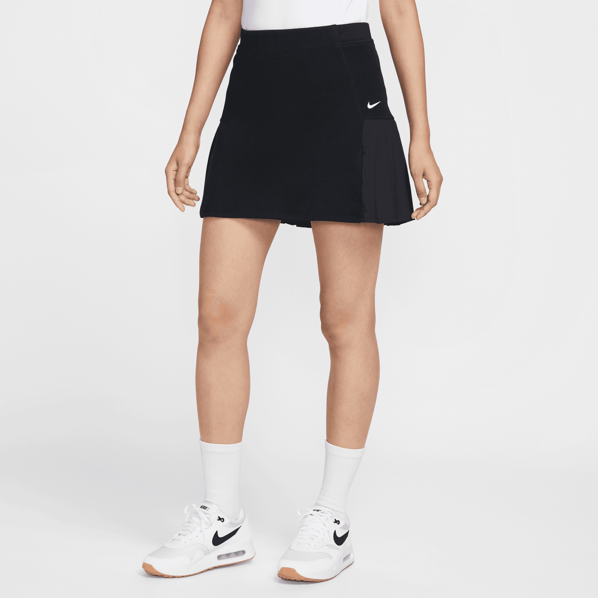 Level up your course outfit. This skirt combines breathable pique fabric with a woven pleated panel for elevated comfort and movement.
