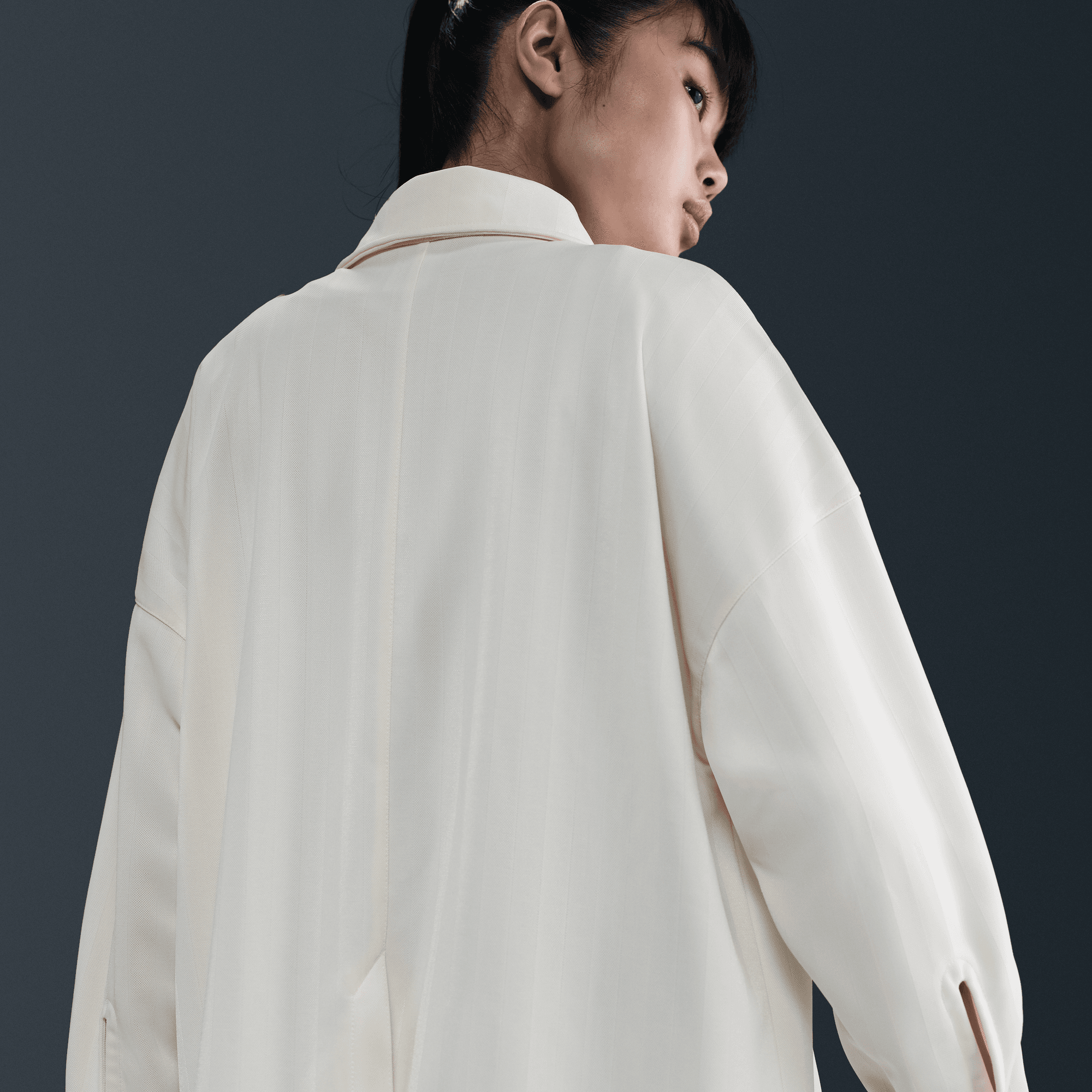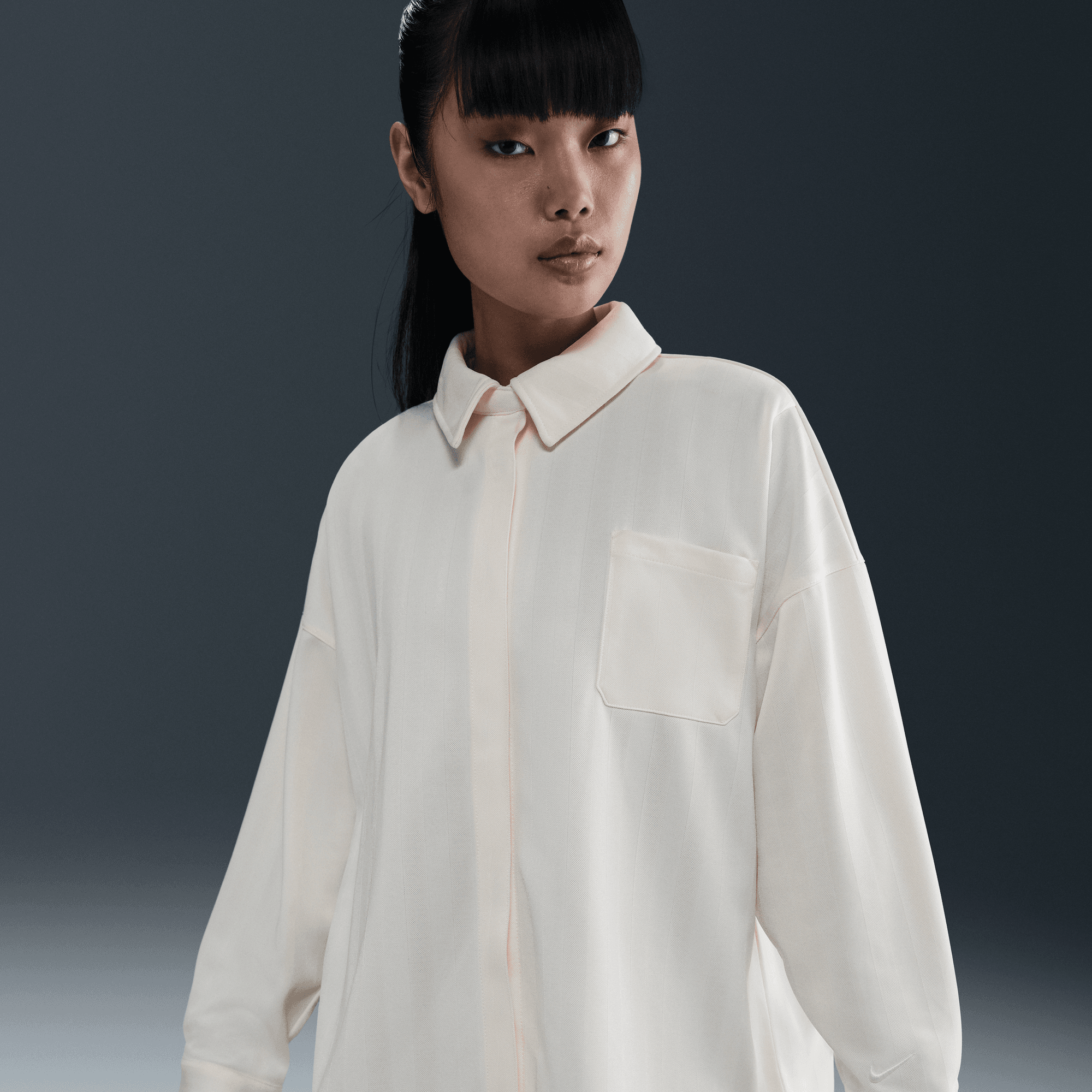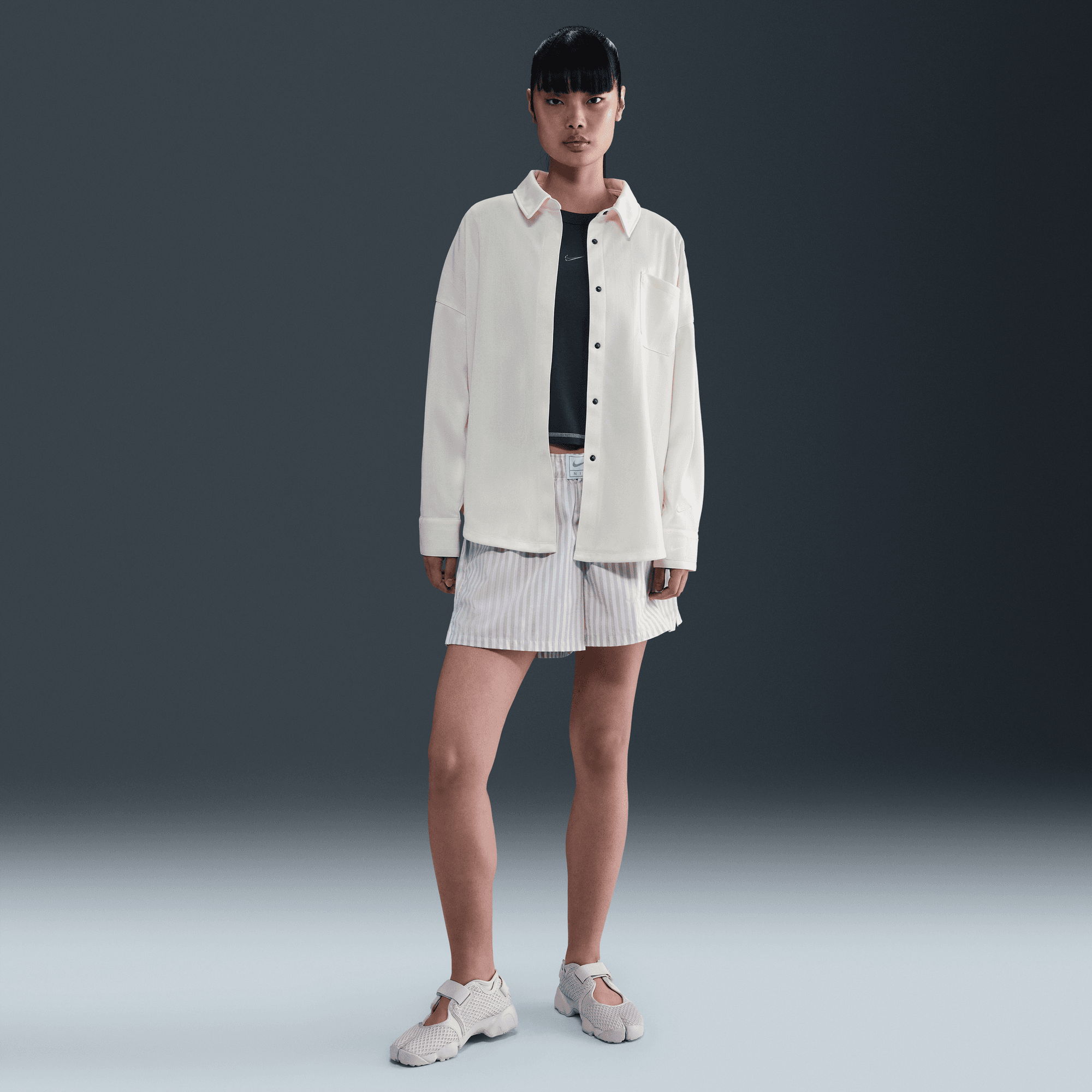 NIKE SPORTSWEAR WOMEN'S OVERSIZED JACQUARD STRIPED BUTTON-DOWN SHIRT